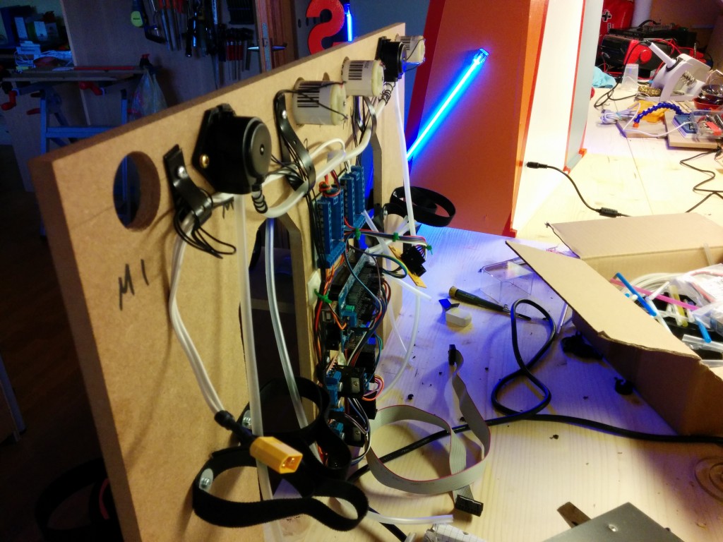 Das Gerät besteht aus mehreren Teilen. Das Display, die hübschen Animation, die Logik und alle Abläufe laufen auf einem Nexus7 Android Tablet, welches in der Maschine verbaut ist.